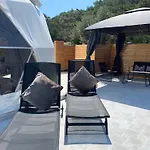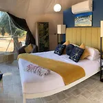 Sono inclusi anche un patio e un salottino, con vista sul giardino. Il bagno è dotato di un bidet, un bagno alla francese e una doccia, asciugacapelli e asciugamani.